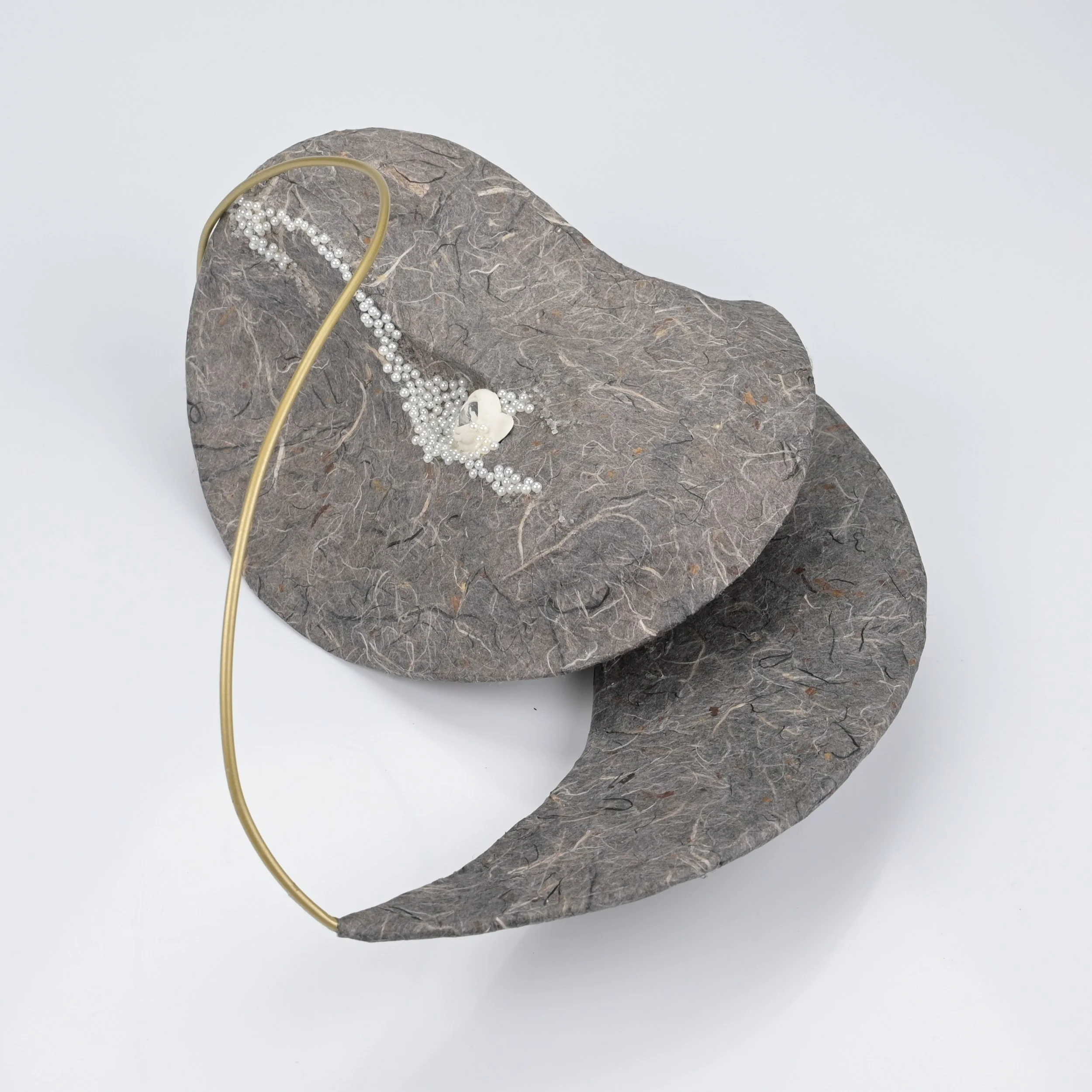 Gray pearls 8” x 14” x 14” paper, wire, mixed media